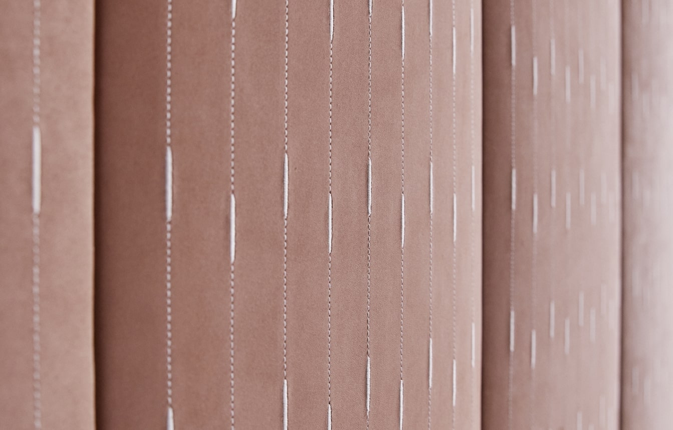 Per incontrare ancor di più le esigenze progettuali, i moduli Archiframes possono essere anche decorati con un ricamo. è possibile scegliere tra 4 motivi (Rio, Drop, Mosso monolor e Mosso bicolor) e per ciascuno scegliere un colore di filato, per un effetto cromatico a contrasto o ton-sur-ton.
